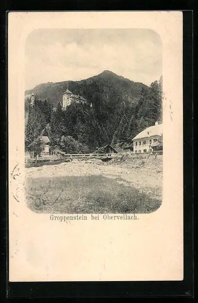 AK Groppenstein bei Obervellach, Blick auf Burg mit Berg