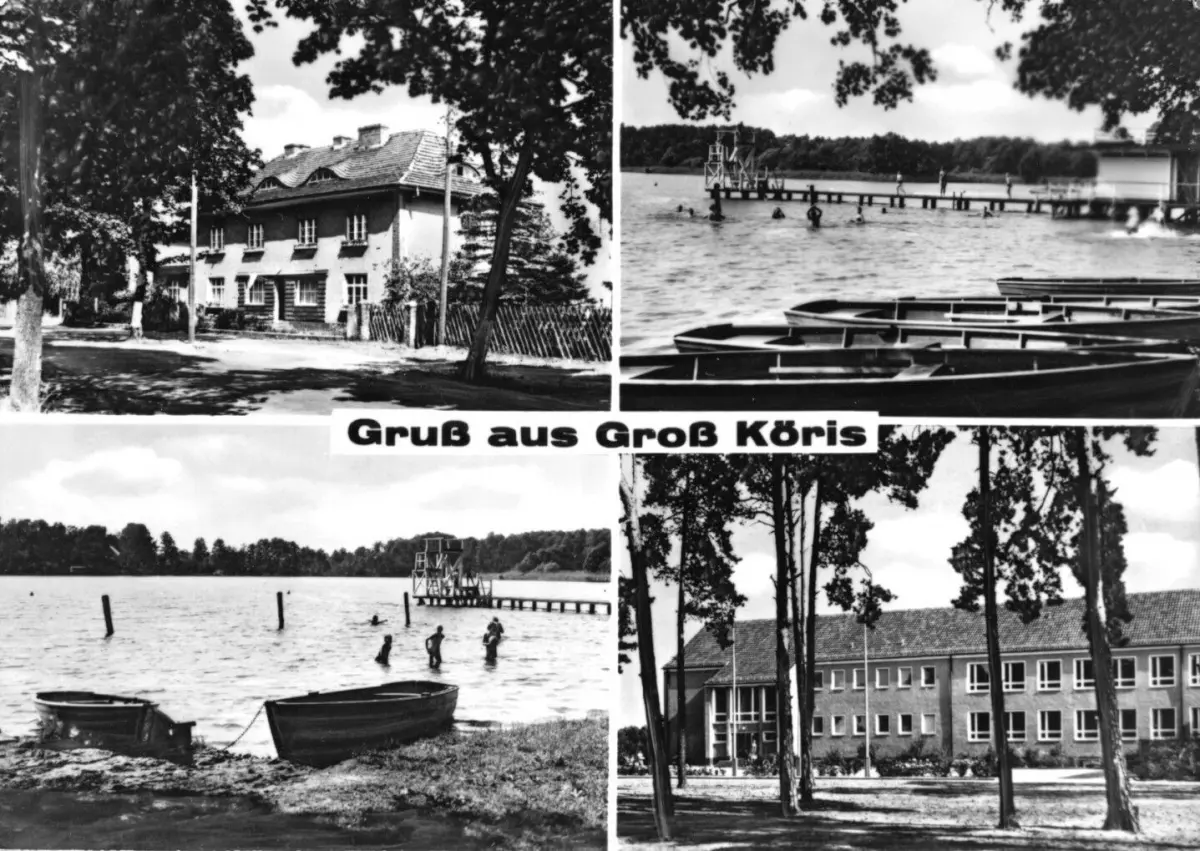 Ansichtskarte Groß Köris Kr. Königs Wusterhausen vier Abb. - u.a. Oberschule Erhaltung I-II postalisch gelaufen, gestempelt: Gross Köris, 21.6.71 Druckvermerk: 1970 Herstellungsland: DDR Verlag: PGH Rotophot, Bestensee bei Berlin