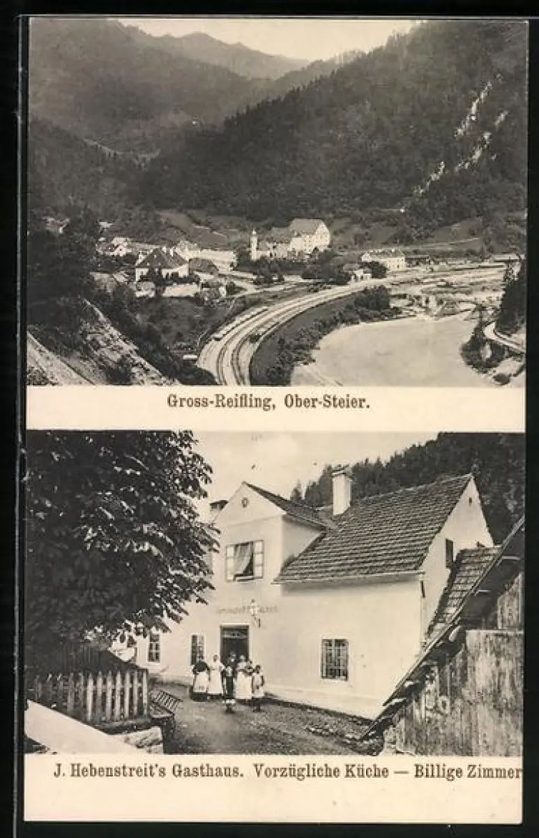 AK Gross-Reifling /Ober-Steier, J. Hebenstreits Gasthaus, Ortsansicht aus der Vogelschau