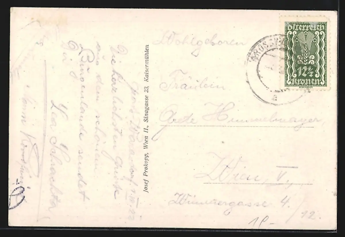 gelaufen 1922, rückseitig Klebe- und Papierreste, guter Zustand