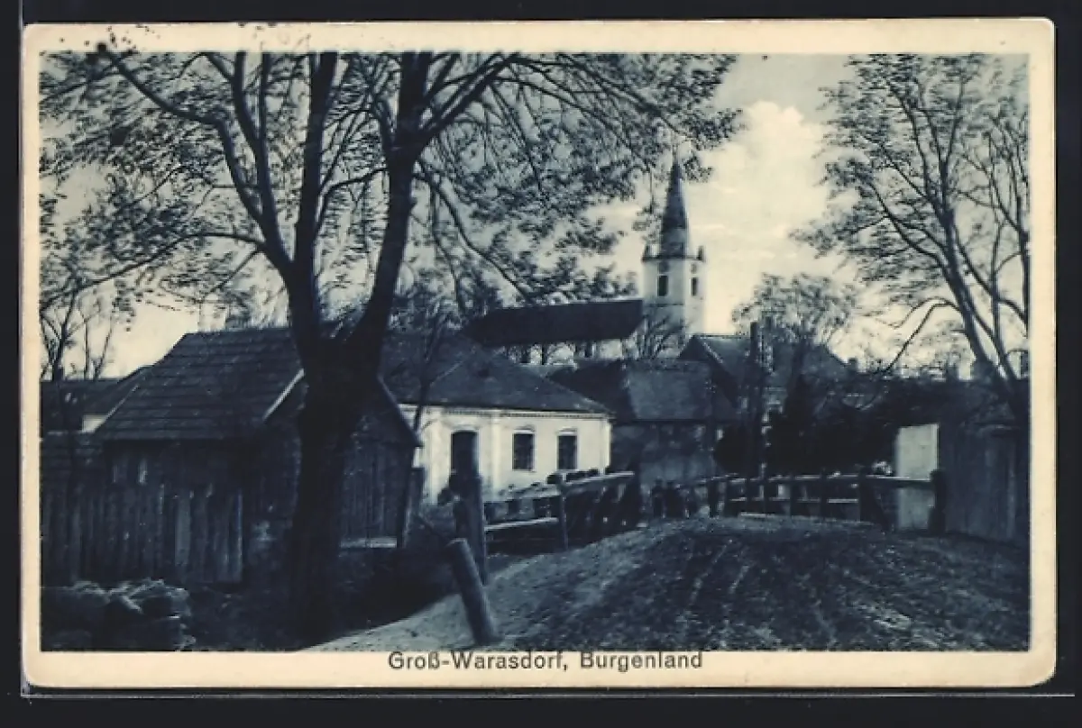 AK Gross-Warasdorf /Burgenland, Ortspartie mit Kirche