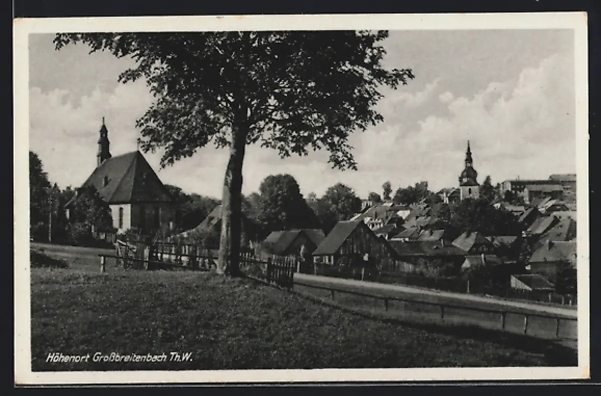 AK Grossbreitenbach /Thür. Wald, Ortspartie mit Kirche