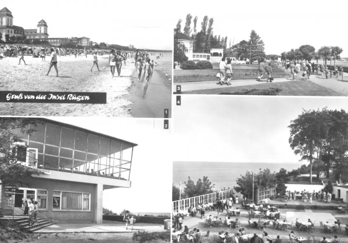 Ansichtskarte im Format 14,5 x 21 cm Gruß von der Insel Rügen vier Abb. - Binz, Baabe, Göhren, Sellin Erhaltung II, Beförderungsspuren, bügig postalisch gelaufen, ungestempelt: Druckjahr: 1984 Herstellungsland: DDR Verlag: Bild und Heimat, Reichenbach i.V. - 06 01 12 040 Der