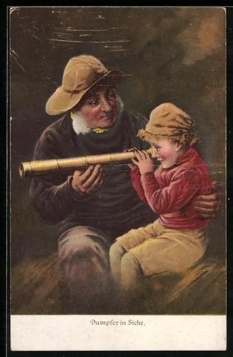 AK Grossvater und Kind schauen durch ein Fernrohr