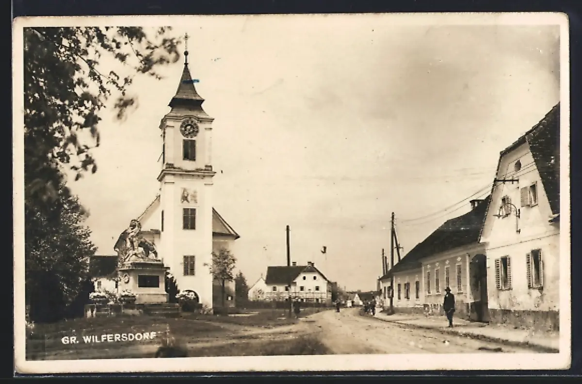 AK Grosswilfersdorf, Teilansicht m. Kirche