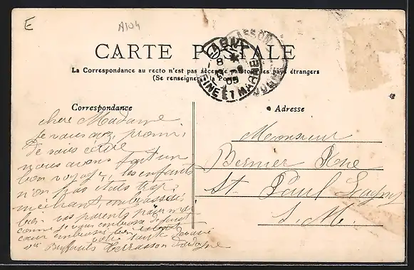 alte Ansichtskarte, gelaufen 1905, Briefmarke entfernt, rückseitig Oberflächenschaden, guter Zustand
