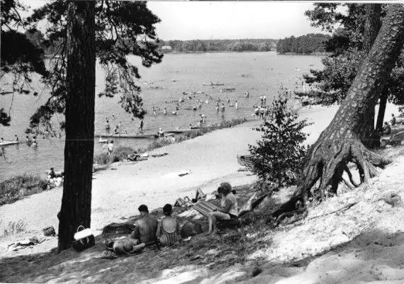 Ansichtskarte Grünheide Mark Badestelle am Peetzsee, belebt Erhaltung I-II postalisch gelaufen, gestempelt: Grünheide, 6.8.69 Druckvermerk: 1969 Herstellungsland: DDR Verlag: Graphokopie H. Sander, Berlin - B1904