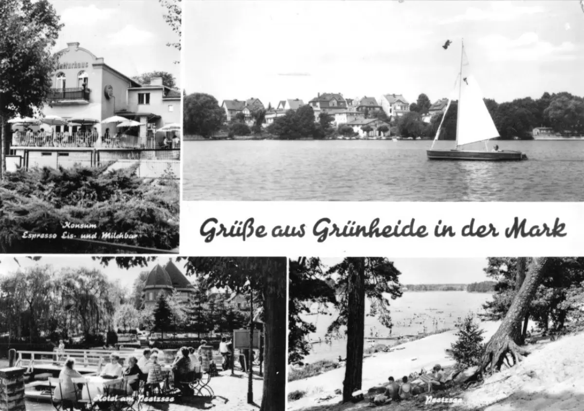 Ansichtskarte Grünheide Mark vier Abb. Erhaltung I-II, Beförderungsspuren postalisch gelaufen, gestempelt: Grünheide, 15.8.74 Druckvermerk: 1974 Herstellungsland: DDR Verlag: Planet-Verlag Berlin - 02 05 07 123