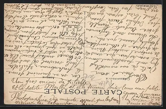 Personenbezogene Daten auf der Rückseite der Karte wurden durch blauen Textmarker unkenntlich gemacht. Die blauen Stellen sind auf die Vorderseite durchgeweicht und wirken sich negativ auf das Postkartenfoto aus