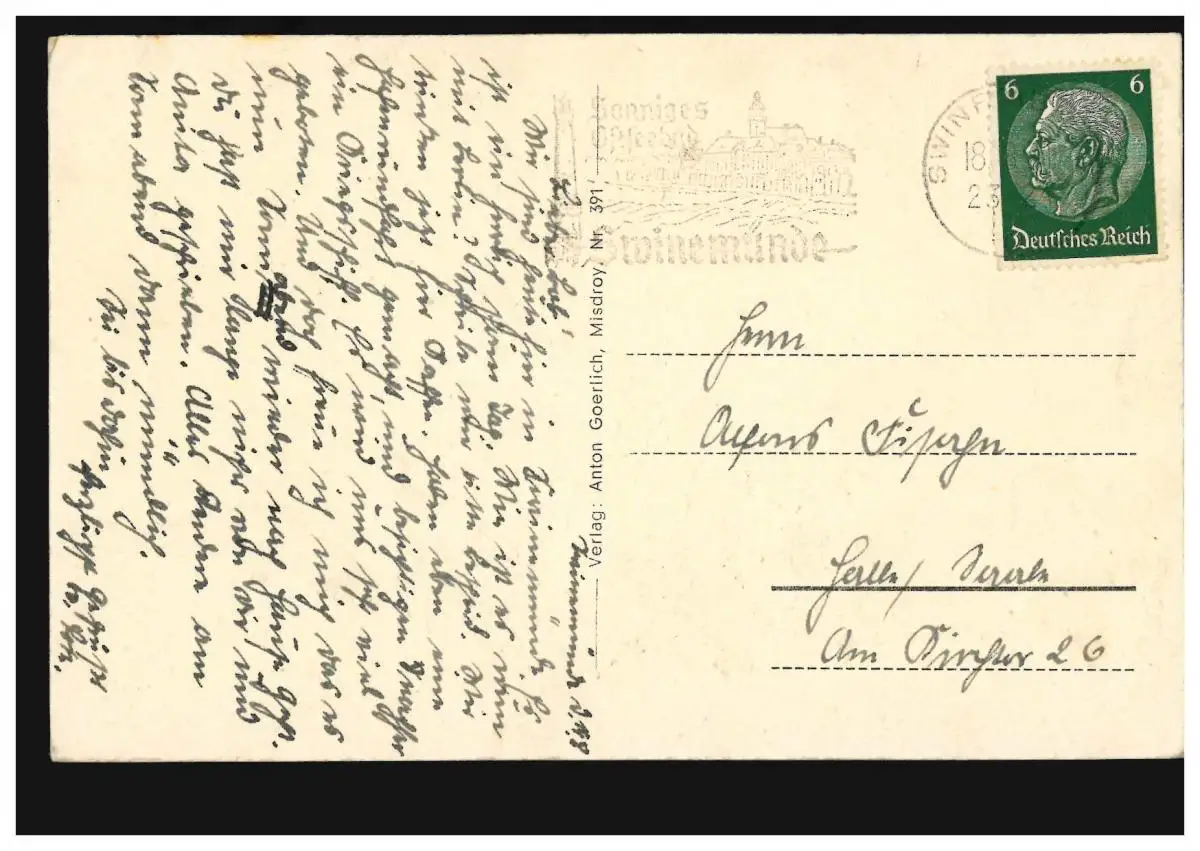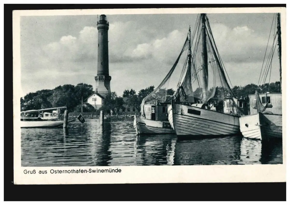 AK Gruß aus Osternothafen-Swinemünde, Werbestempel Sonniges Ostseebad 18.8.1931