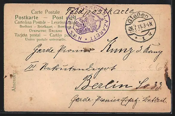 alte Ansichtskarte, gelaufen 1915, guter Zustand