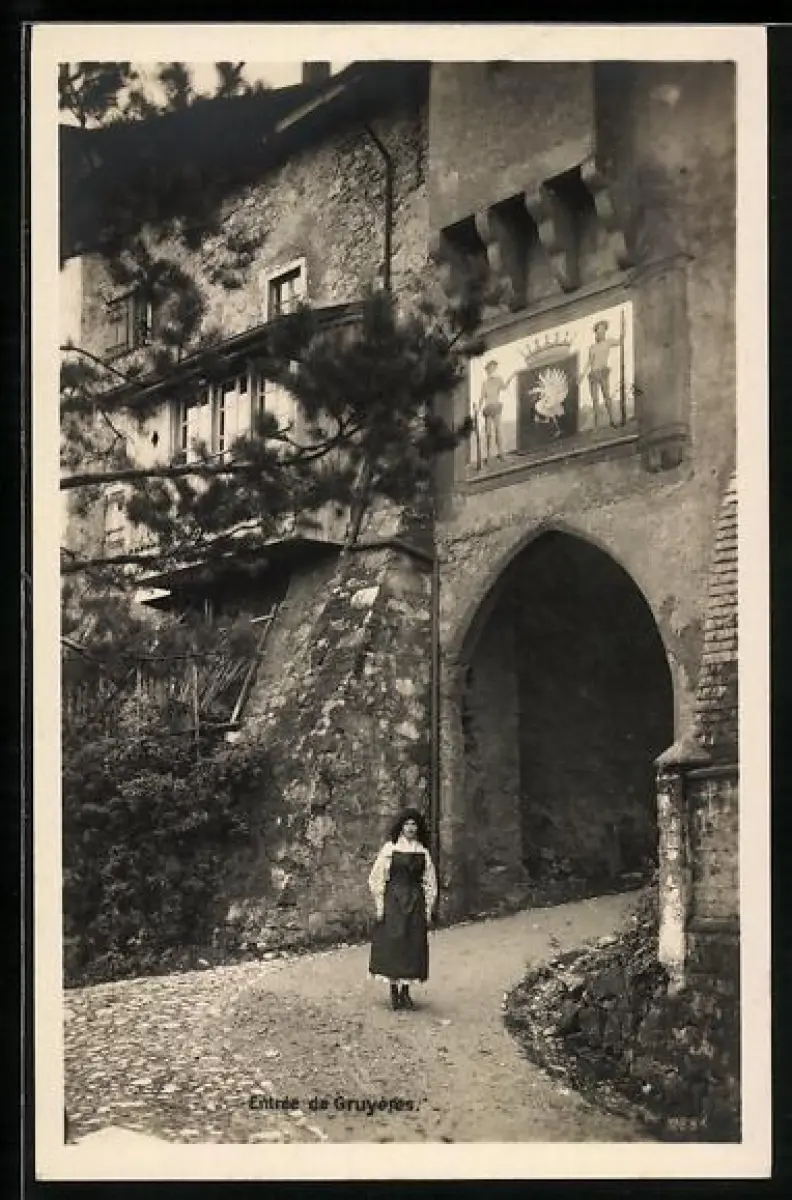 AK Gruyéres, Entrée, Mädchen vor einem Torbogen