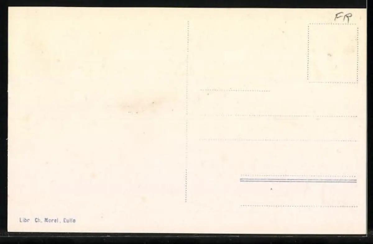 Personenbezogene Daten auf der Rückseite der Karte wurden durch blauen Textmarker unkenntlich gemacht. Die blauen Stellen sind auf die Vorderseite durchgeweicht und wirken sich negativ auf das Postkartenfoto aus