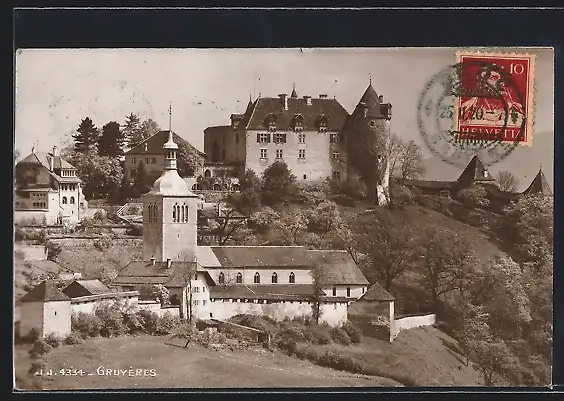 AK Gruyères, Ortsansicht aus der Vogelschau
