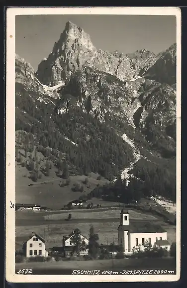 AK Gschnitz, Ortsansicht mit der Ilmspitze