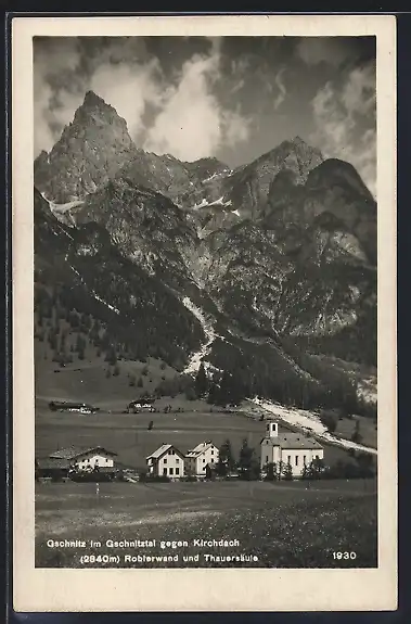 AK Gschnitz im Gschnitztal, Ortsansicht gegen Kirchdach, Roblerwand und Thauersäule