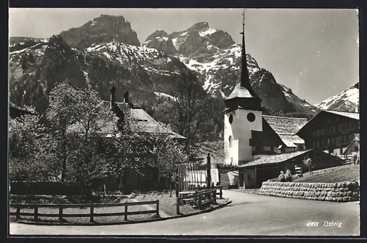 AK Gsteig, Strassenpartie an der Kirche