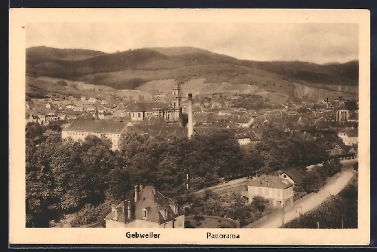 AK Guebwiller, Panorama de la ville avec vue sur les collines environnantes
