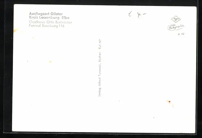 AK Güster /Kreis Lauenburg, Blick auf das Gasthaus Otto Burmester