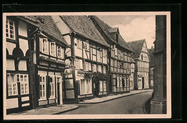 AK Gütersloh, Alte Fachwerkhäuser, Strassenpartie