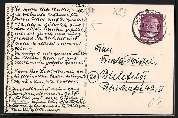 alte Ansichtskarte, gelaufen 1945, guter Zustand