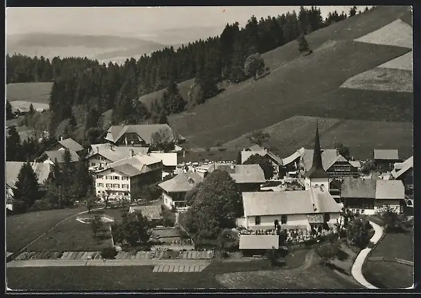AK Guggisberg, Teilansicht mit Kirche und Strassenpartie