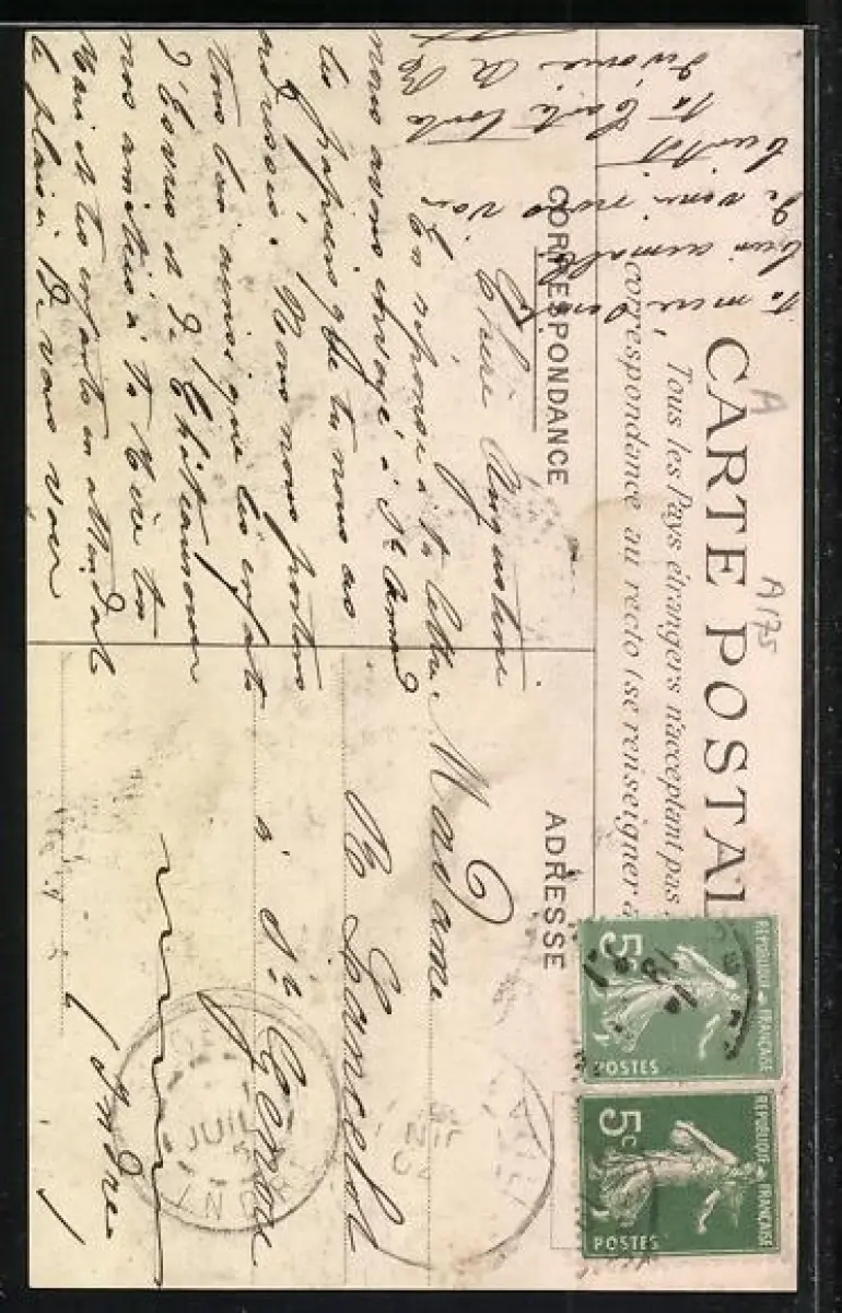 alte Ansichtskarte, gelaufen, Stempelspur, Eckknick unten links, Abriebspur unten links, guter Zustand