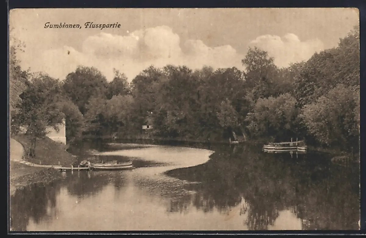 AK Gumbinnen, Flusspartie mit Ruderbooten