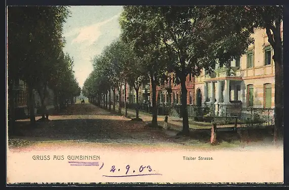 AK Gumbinnen, Partie in der Tilsiter Strasse