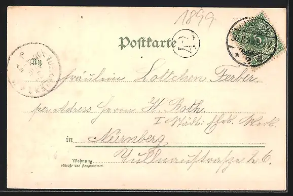 alte Ansichtskarte, gelaufen 1899, guter Zustand
