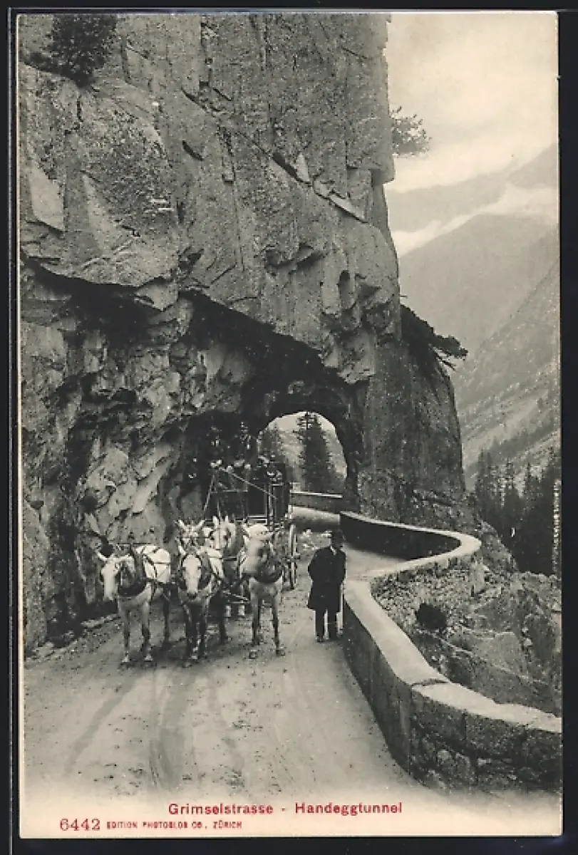 AK Guttannen, Postkutsche auf der Grimselstrasse am Handeggtunnel