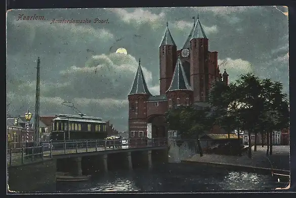 AK Haarlem, Amsterdamsche Poort, Strassenbahn