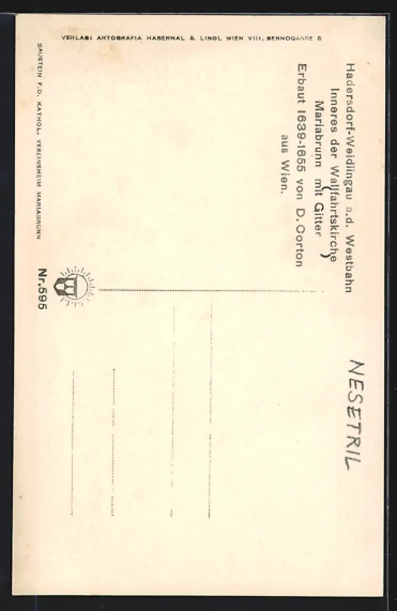 AK Hadersdorf-Weidlingau a. d. Westbahn, Inneres der Wallfahrtskirche Mariabrunn mit Gitter