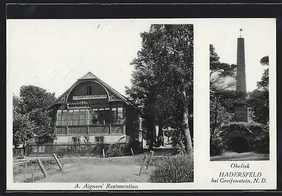 AK Hadersfeld, A. Aigners` Restauration, Obelisk