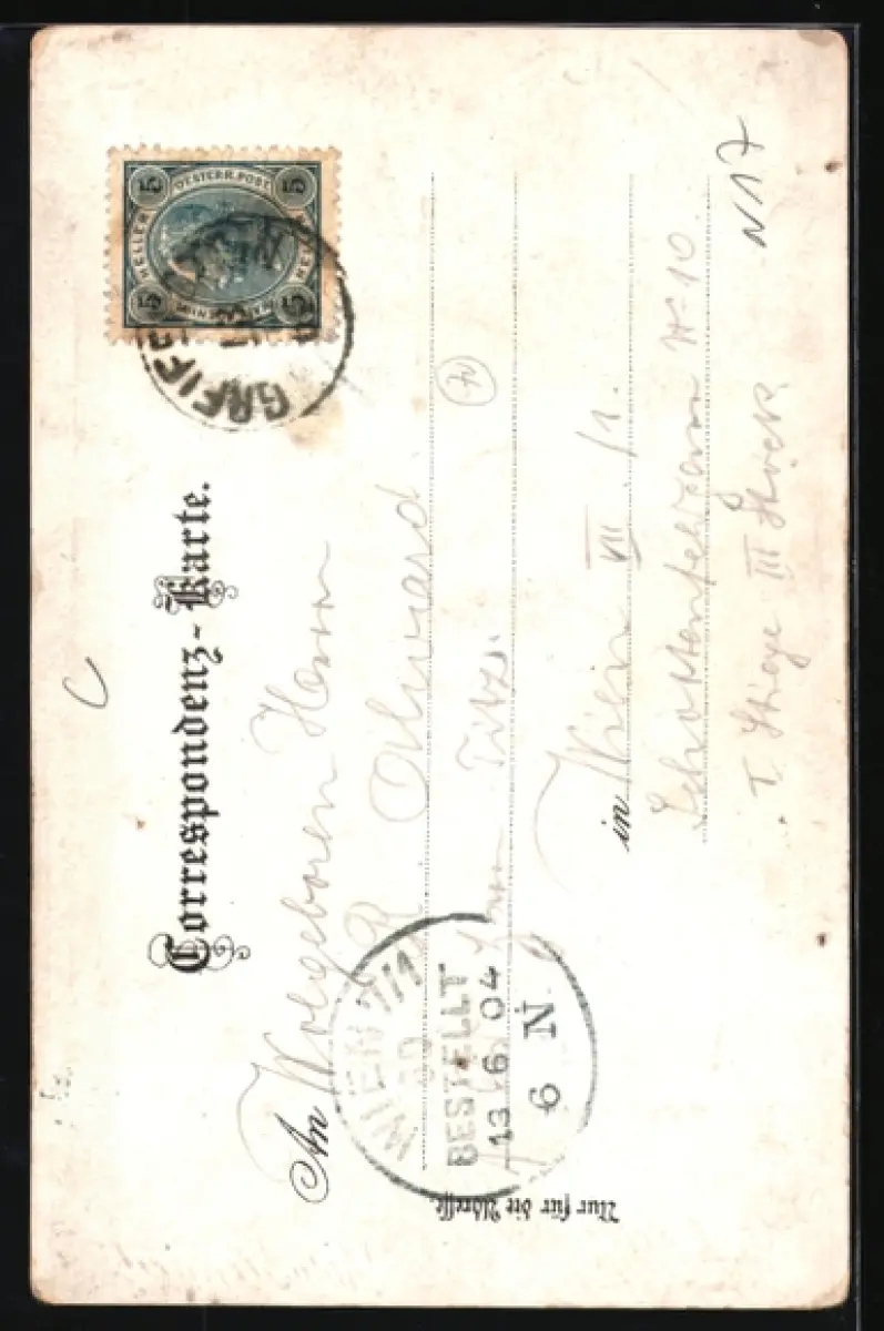 alte Ansichtskarte, gelaufen 1904, Stempelspur, Stecknadelloch li. oben, guter Zustand
