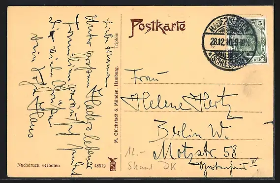 alte Ansichtskarte, gelaufen 1910, guter Zustand