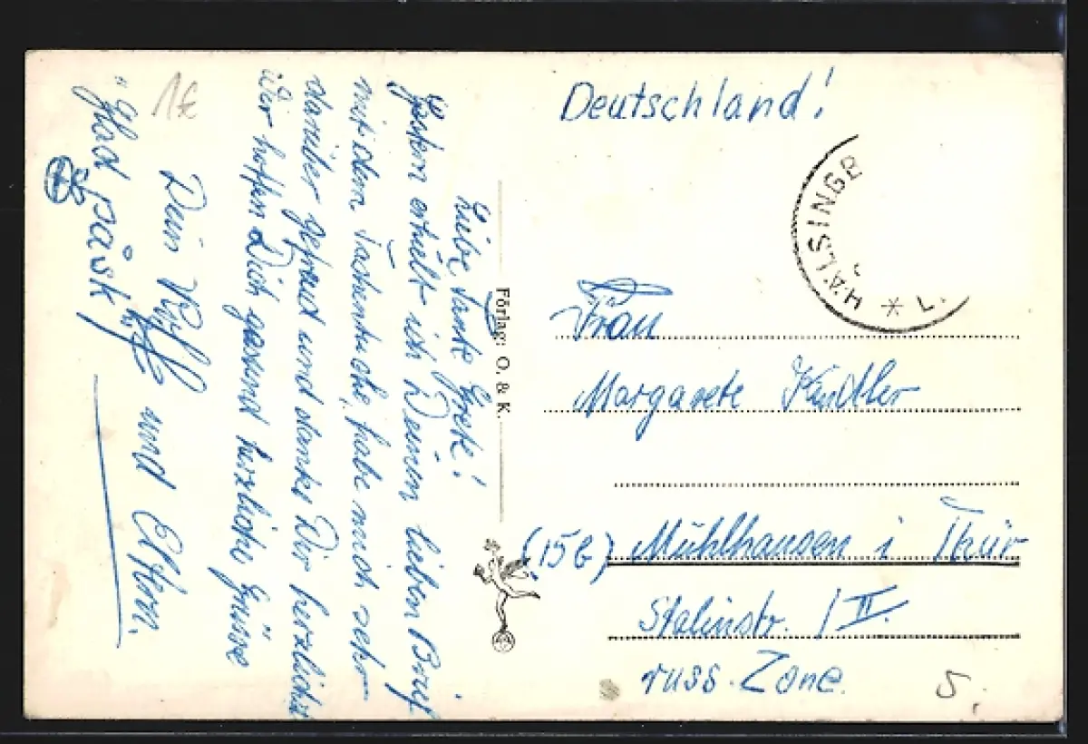 alte Ansichtskarte, gelaufen, Briefmarke entfernt, guter Zustand