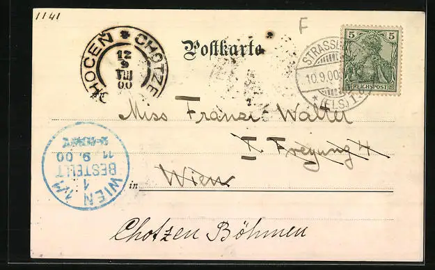 alte Ansichtskarte, gelaufen 1900, guter Zustand
