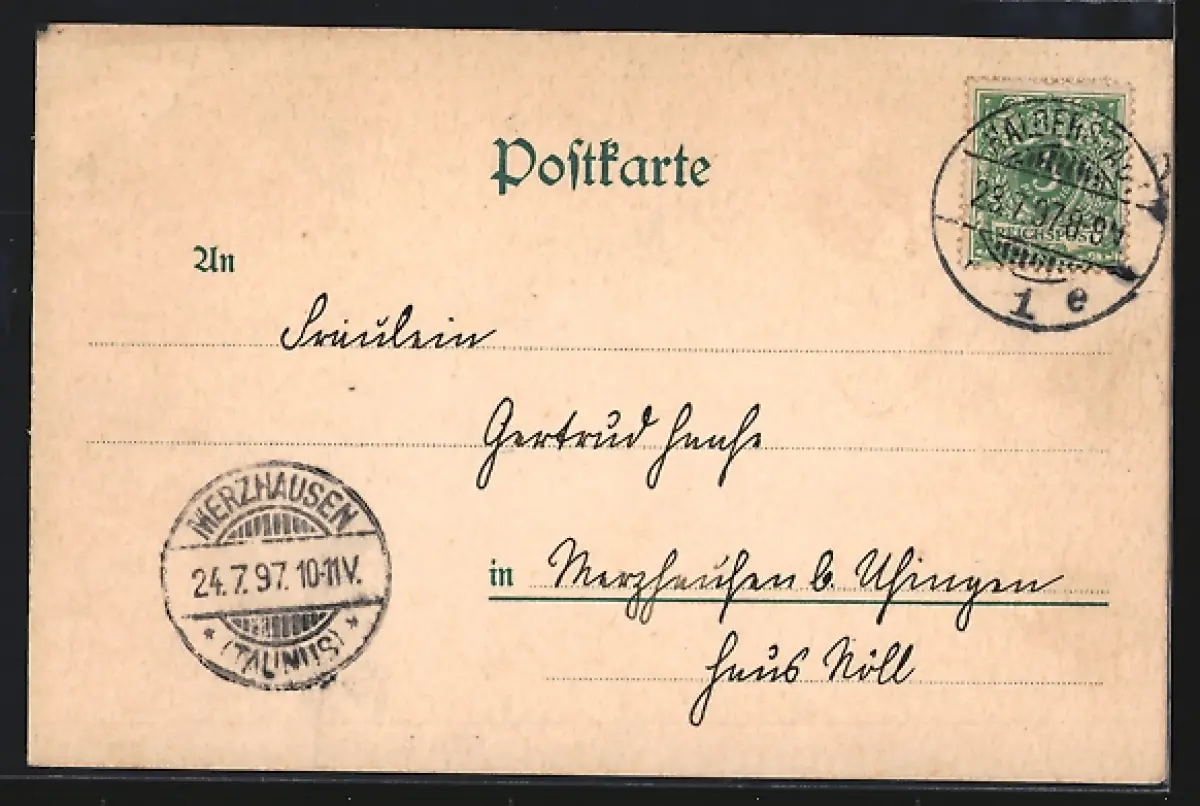 alte Ansichtskarte, gelaufen 1897, guter Zustand