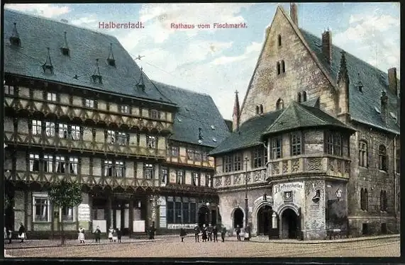 AK Halberstadt, Rathaus Ostseite, Polizei-Revier & Rathauskeller