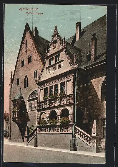 AK Halberstadt, Rathaustreppe und Erker