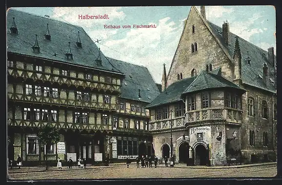 AK Halberstadt, am Rathaus vom Fischmarkt