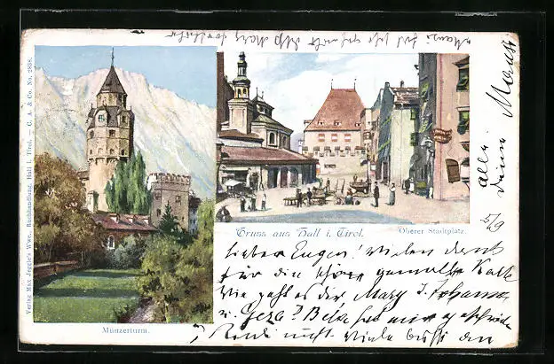 AK Hall, Oberer Stadtplatz, Münzerturm