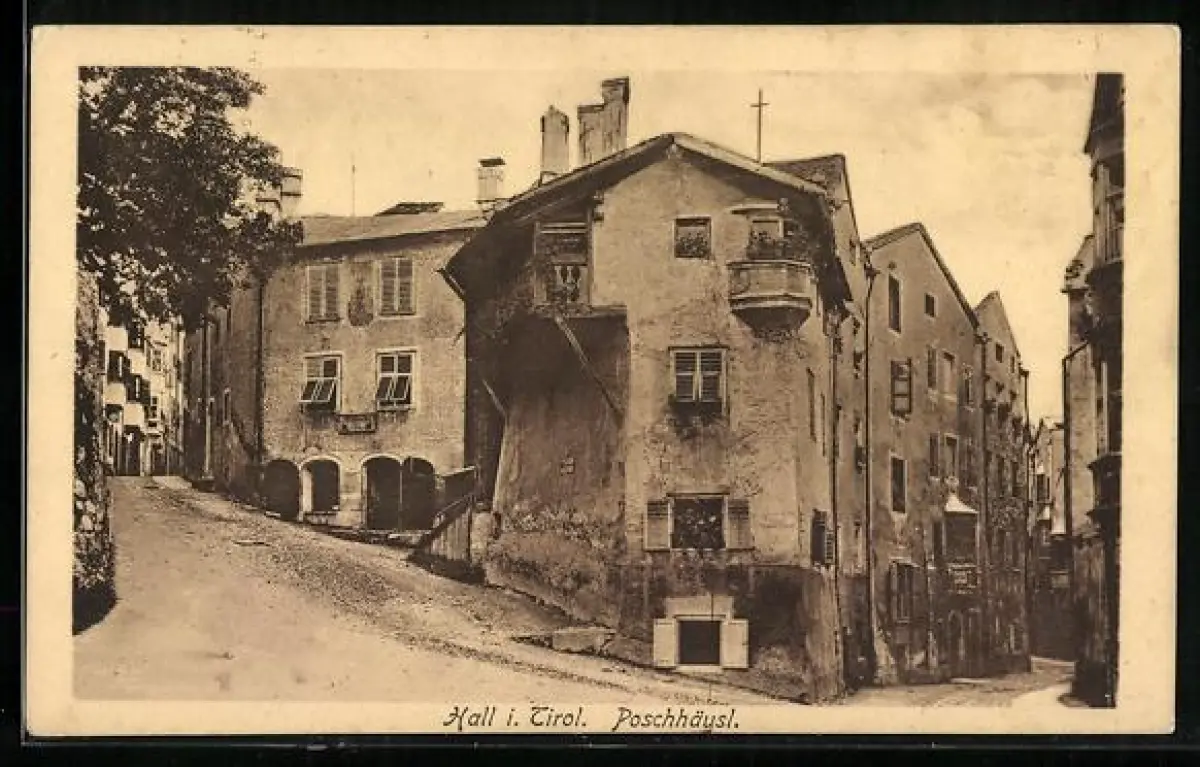 AK Hall i. Tirol, Ortspartie mit Poschhäusl