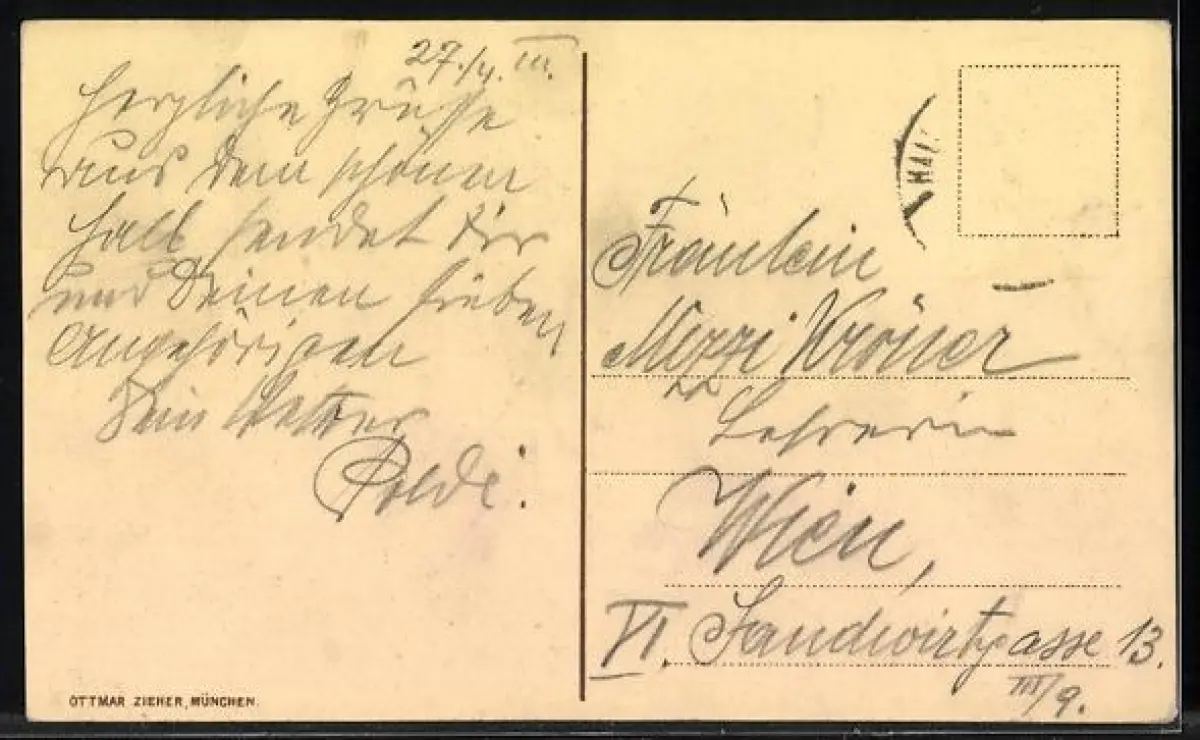 alte Ansichtskarte, gelaufen, Briefmarke entfernt, guter Zustand