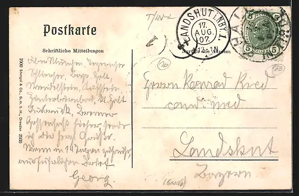 alte Ansichtskarte, gelaufen 1907, Stempelspur, guter Zustand