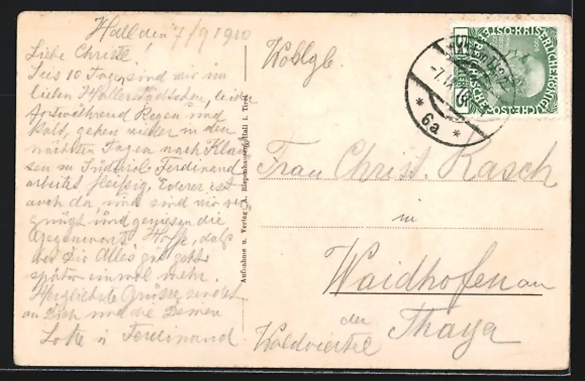 alte Ansichtskarte, gelaufen 1910, guter Zustand