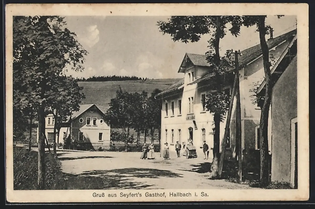 AK Hallbach i. Sa., Strassenpartie bei Seyfert`s Gasthof