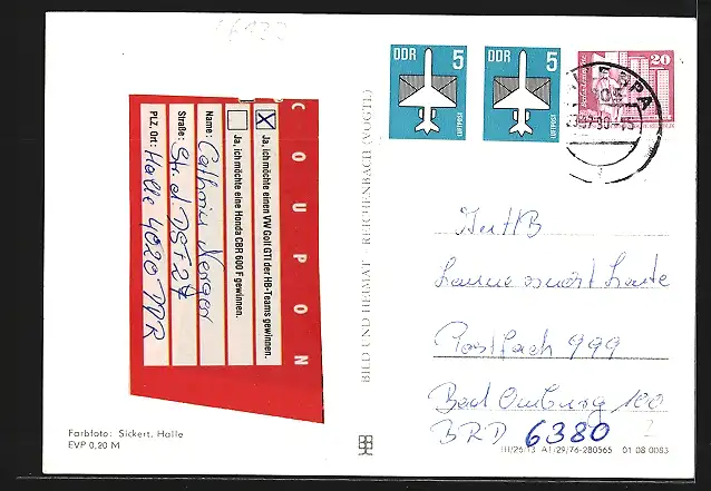 gelaufen 1990, rückseitig Klebe- und Papierreste, guter Zustand