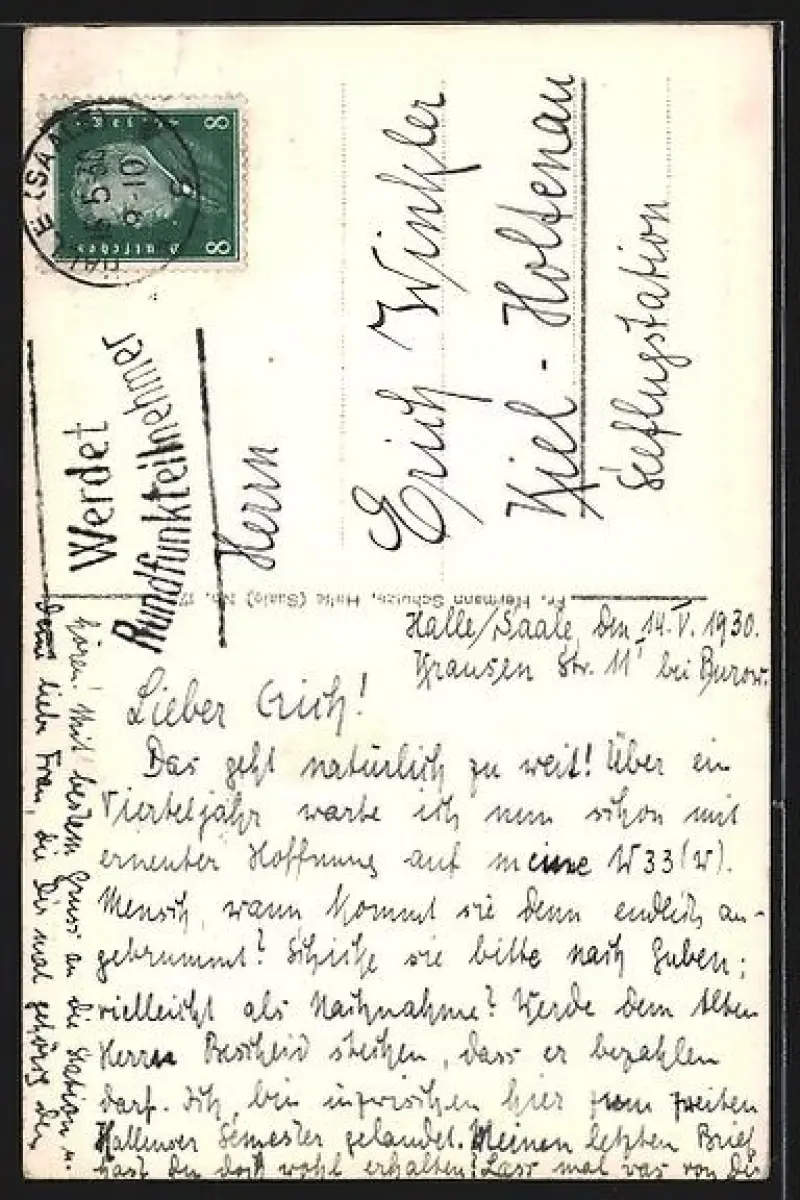alte Ansichtskarte, gelaufen 1930, guter Zustand